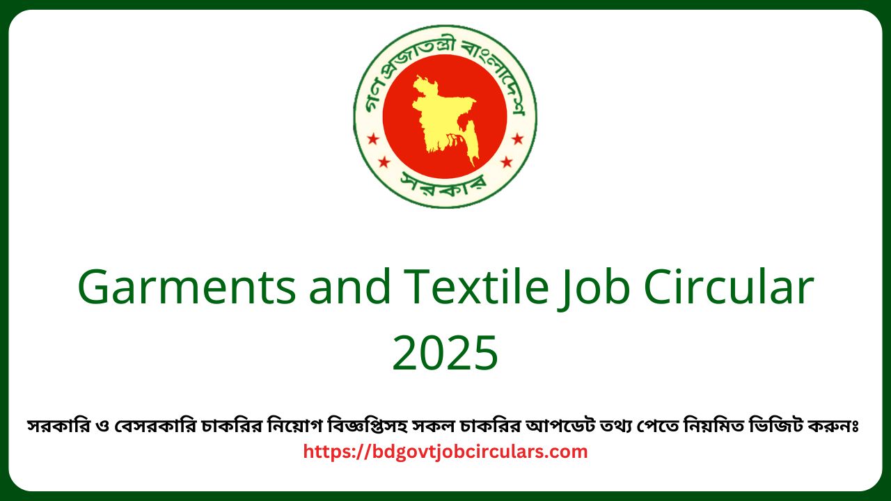 Let’s take a look at the important information about Garments and Textile Job Circular 2025. Such as job publish date, application last date, total vacancy, vacant post name, salary, educational qualifications, how to apply etc.